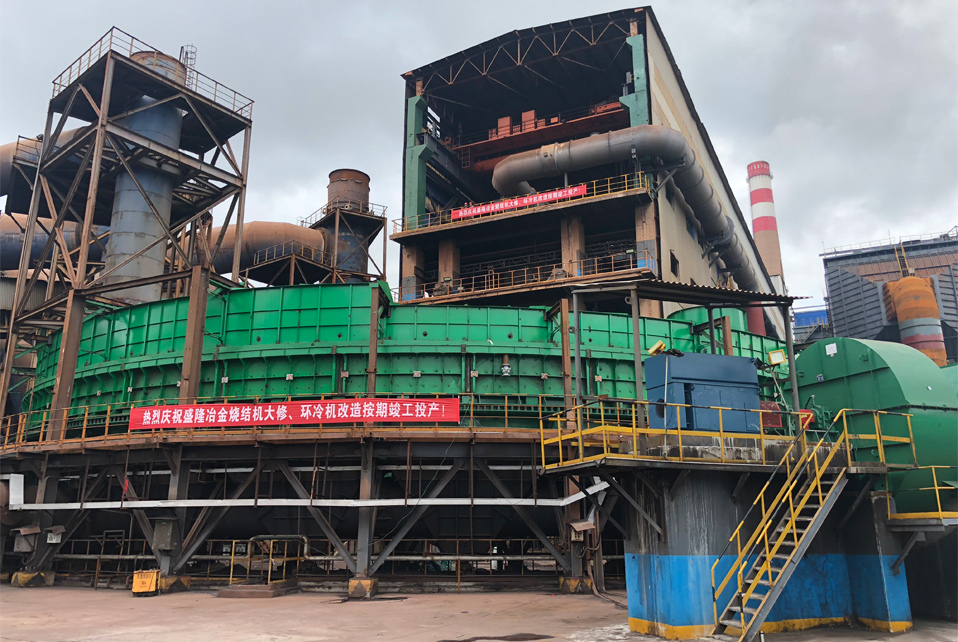 由中冶長天總承包建設的廣西盛隆環冷機大修改造項目,采用了中冶長天自主研制的轉臂式液密封環冷機,有效改善了燒結系統整體密封效果、作業環境并大幅提高設備使用壽命,助力燒結系統實現綠色節能、減排降耗。“轉臂式液密封環冷機”入選國家工業節能技術推薦目錄。